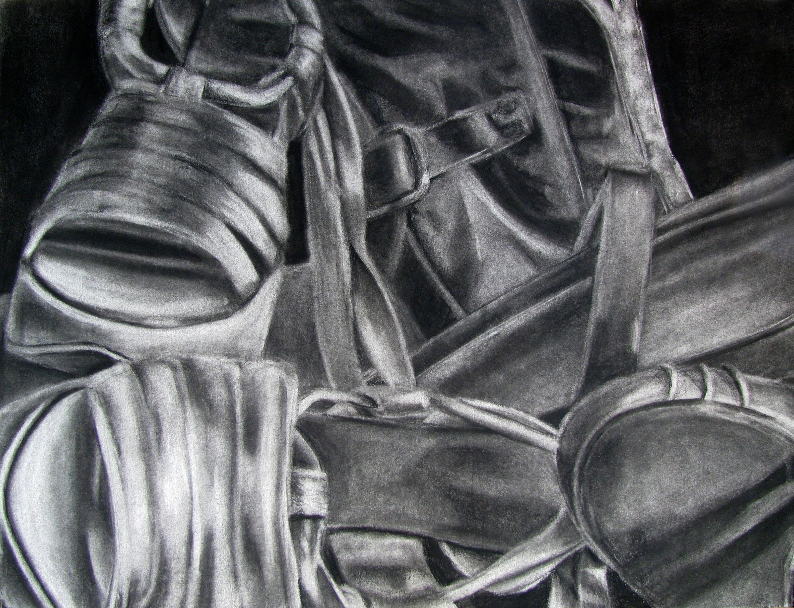 This is when my teacher made me feel like I was in a humanities class. She had me cover the whole sheet of paper with charcoal, then I had to erase in the outlines. Basically drawing in reverse. The process was pretty damn tedious and tiring, but the end result is fun to look at.